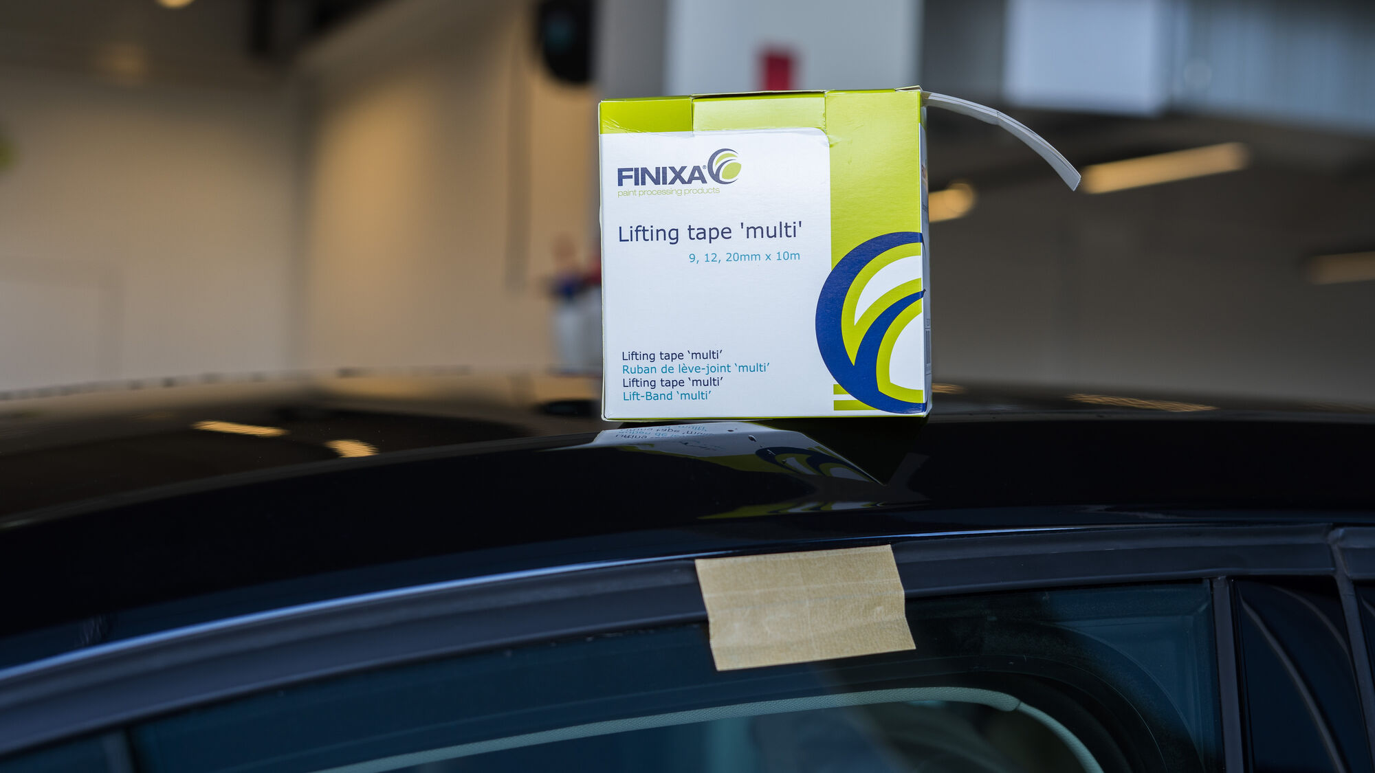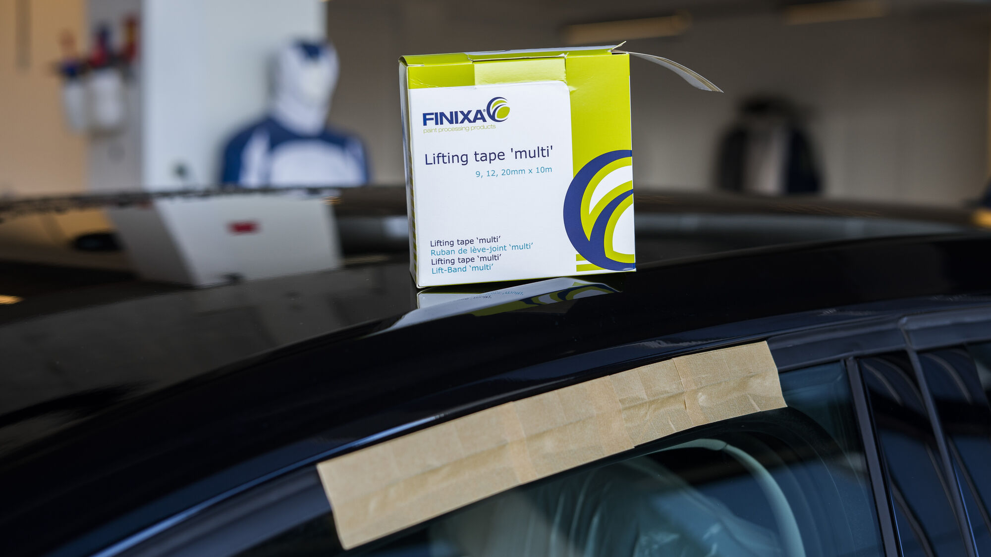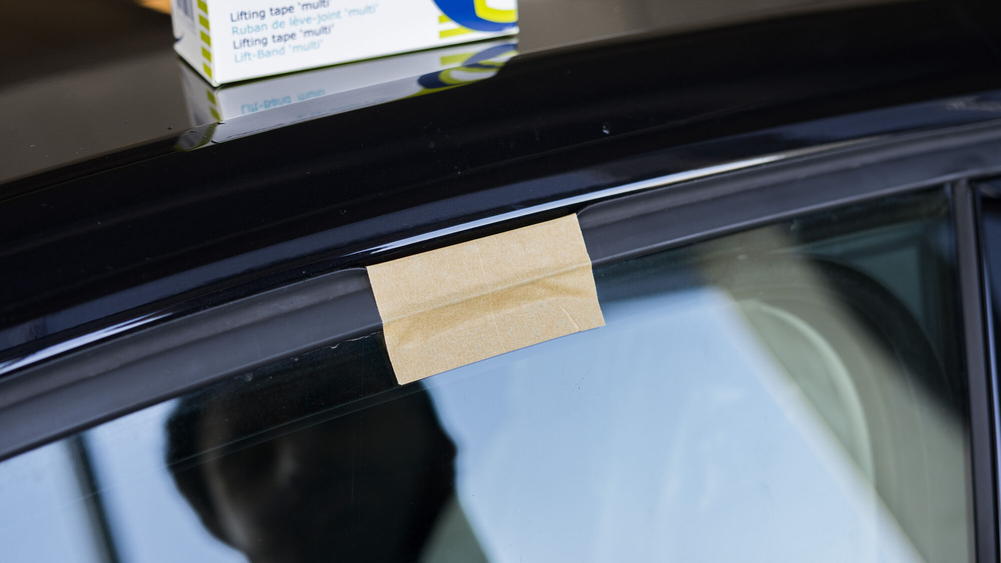 Lemovacia maskovacia páska s dvoma plastovými pruhmi rôznej šírky na maskovanie okien automobilov. Kombinácia dvoch plastových pruhov umožňuje použitie tejto pásky pre tri rôzne aplikácie. Podľa potreby umiestnite jeden, dva alebo dva preložené prúžky medzi gumu okna a diel a potom odtiahnite gumu od dielu prilepením pásky k oknu.